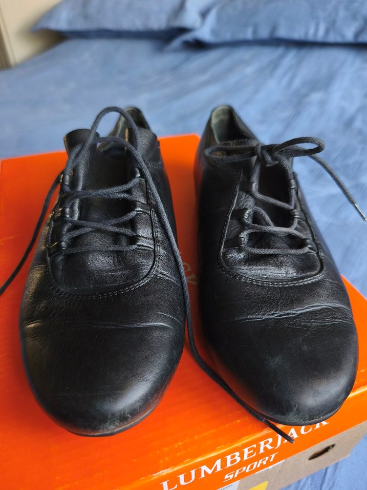 Kadınlar için siyah, blok bağcıklı kauçuk Oxford ayakkabılar. Desensiz, ofis kullanımı için uygun, gotik ve Paris tarzını yansıtır. Marka JMBERA.