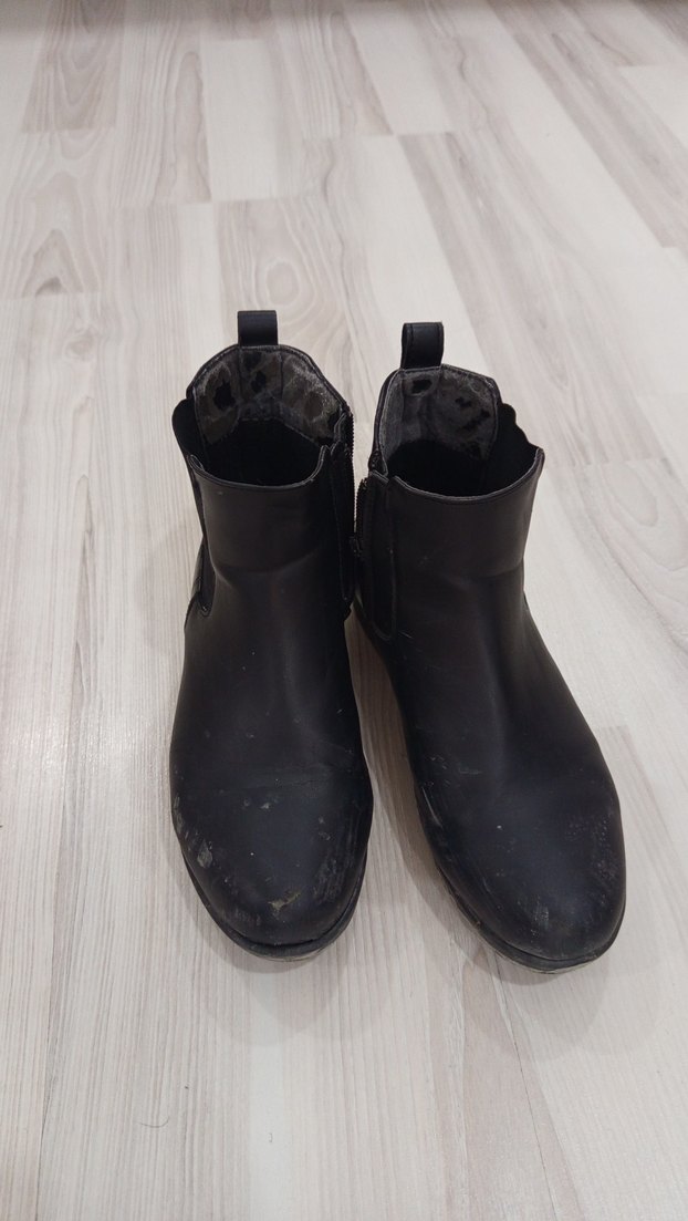 Siyah , ve blok topuklu kadın botları, grunge punk tarzını yansıtır ve günlük kullanıma uygundur. hafif asimlar var fotoğrafta da belli azıcık soyulma var o da göze batmıyor hamile olduğum için satıyorum ayağıma dar geliyor