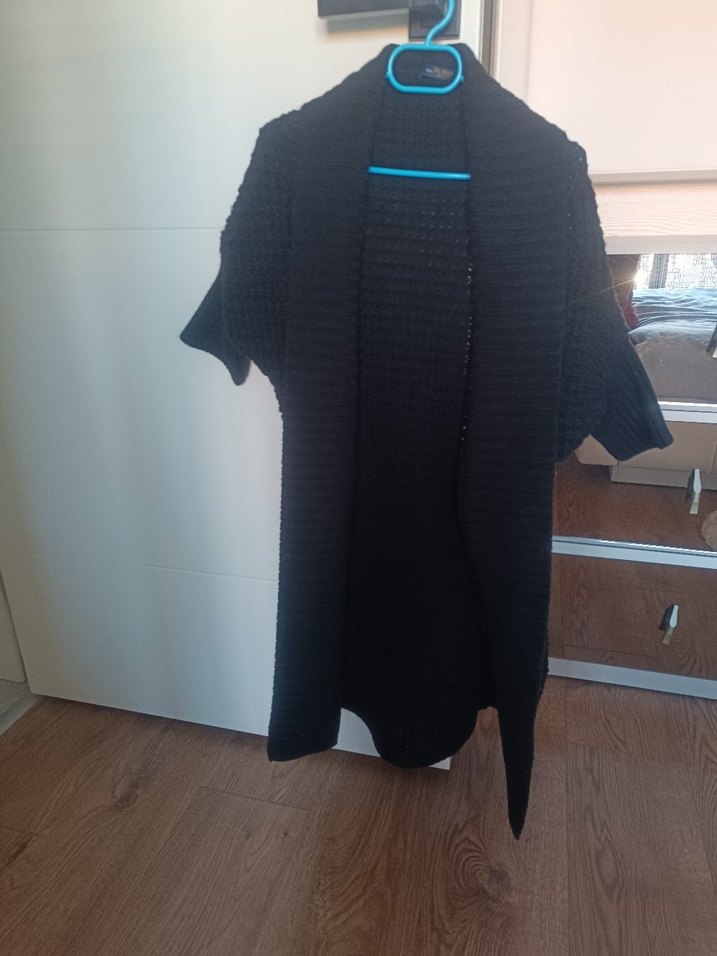 Siyah renkli, boğazlı ve uzun kollu triko hırka, midi boyda ve bol kesimdir. Günlük kullanıma uygun, rahat ve desen içermeyen bir tasarıma sahiptir.