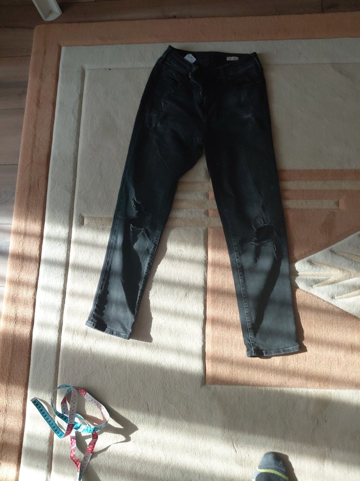Kadın Siyah Bol Kesim Denim Jean mavi Jean yırtıklı
