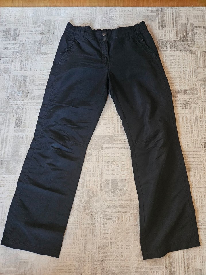 Siyah bol kesim, midi boy, tokalı detaylara sahip denim pantolon, sokak stili ve açık hava için uygundur.