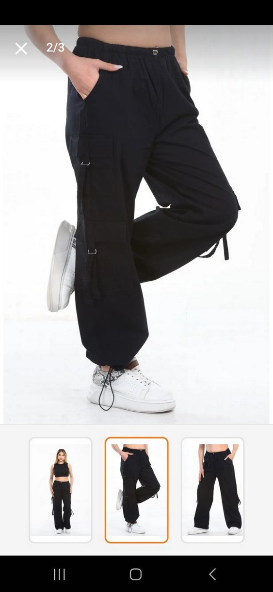 Kadın Siyah Bol Kesim kargo cep Pantolon