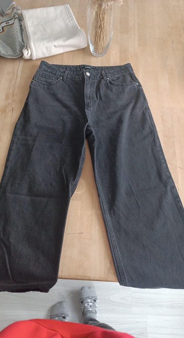 Kadın Siyah Bol Kesim Midi Denim Pantolon