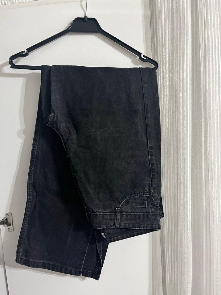 Siyah renkte, bol kesim kot pantolon. Denim kumaştan, günlük rahat kullanım için uygun, desen içermeyen sokak tarzı model.
