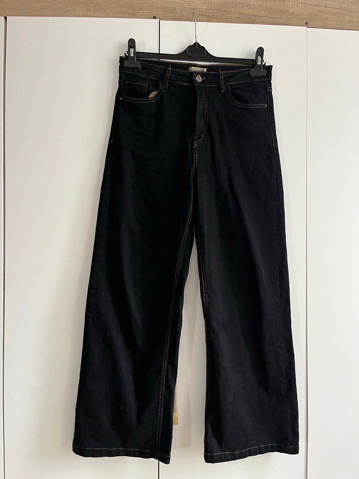 Siyah, bol kesim midi kot pantolon. Günlük kullanıma uygun, rahat ve normcore tarzda. Denim kumaştan, şıklık katan sade tasarım.