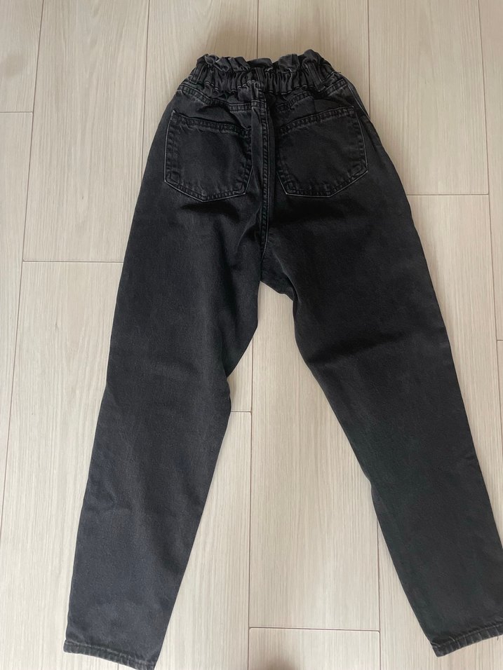 Siyah renkli, bol kesim ve lastik bel detaylı midi uzunlukta kot pantolon. Günlük kullanıma uygun, normcore tarzda ve desensiz tasarım.