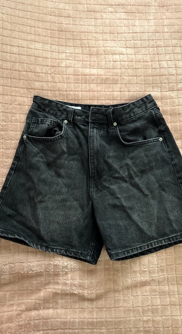 Siyah, bol kesim mini denim şort. Sade tasarımıyla günlük ve sokak stiline uygun rahat bir seçim. Trendy görünüm için ideal. Hiç giyilmedi