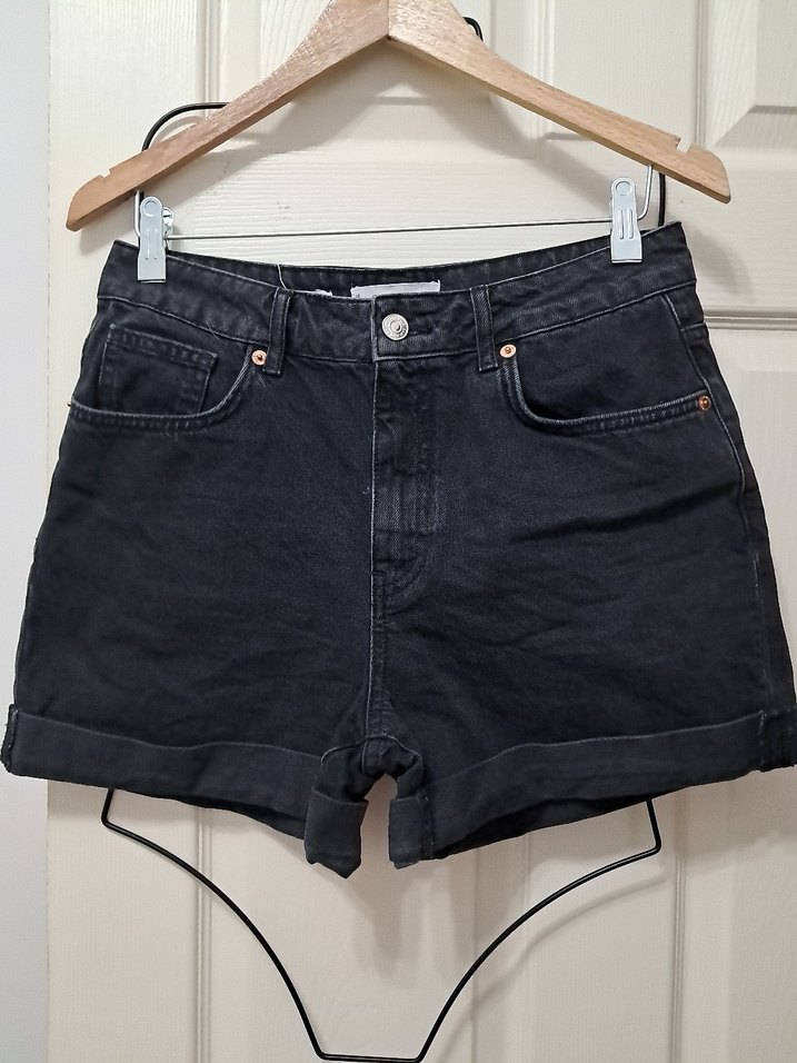 Kadın Siyah Bol Kesim Mini Kot Şort