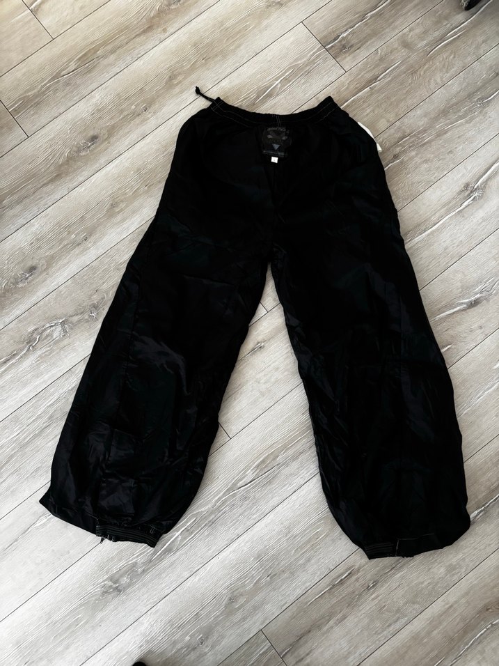 Siyah bol kesim, uzun paça pantolon. Rahat ve sade tasarımıyla dış mekanlar için uygun, konforlu bir stil sağlar. Kayak pantolonu