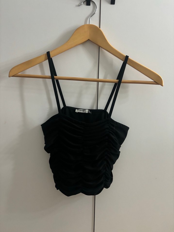 Kadın Siyah Büzgülü Askılı Mini Büstiyer