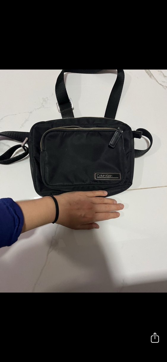 Siyah Calvin Klein çapraz çanta, fermuarlı ön cep ve ayarlanabilir askıya sahip, sentetik kumaştan üretilmiştir. Teklif verin