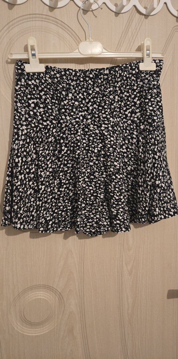 Kadın Siyah Çiçek Desenli Mini Şortlı Etek