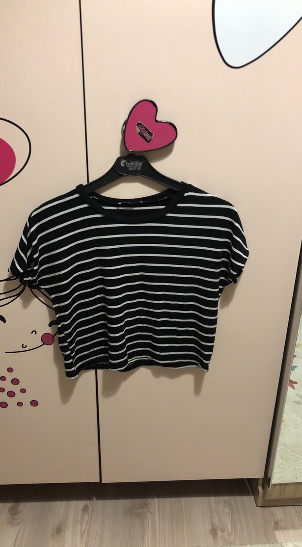 Kadın Siyah Çizgili Kısa Crop Top