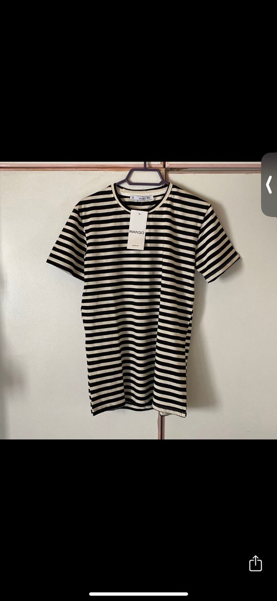 Kısa kollu, bisiklet yaka ve siyah çizgili desenli kadın tişörtü. Pamuklu kumaştan yapılmış, normal boyda ve rahat kesimlidir. Günlük kullanıma uygundur, zahmetsiz şıklık sunar.