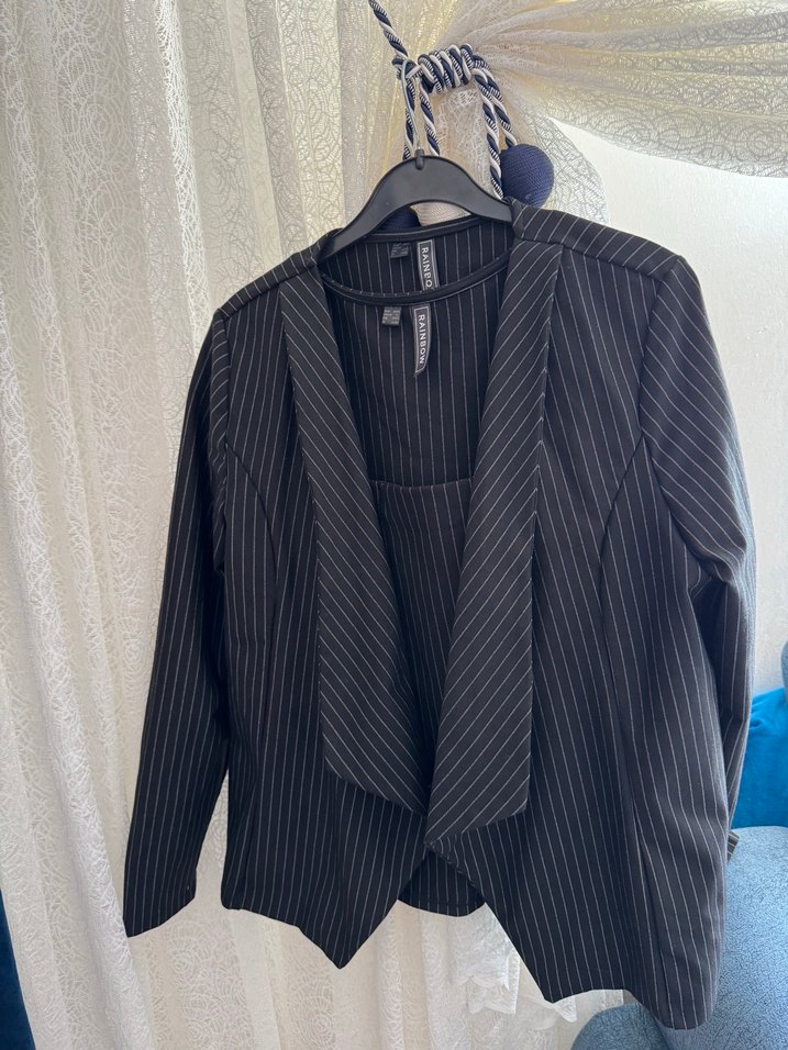 Kadın Siyah Çizgili Midi Blazer Ceket