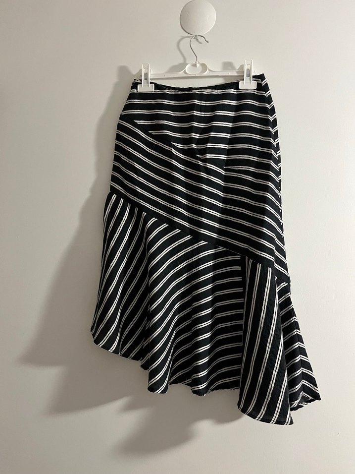 Kadın Siyah Çizgili Midi Etek asimetrik