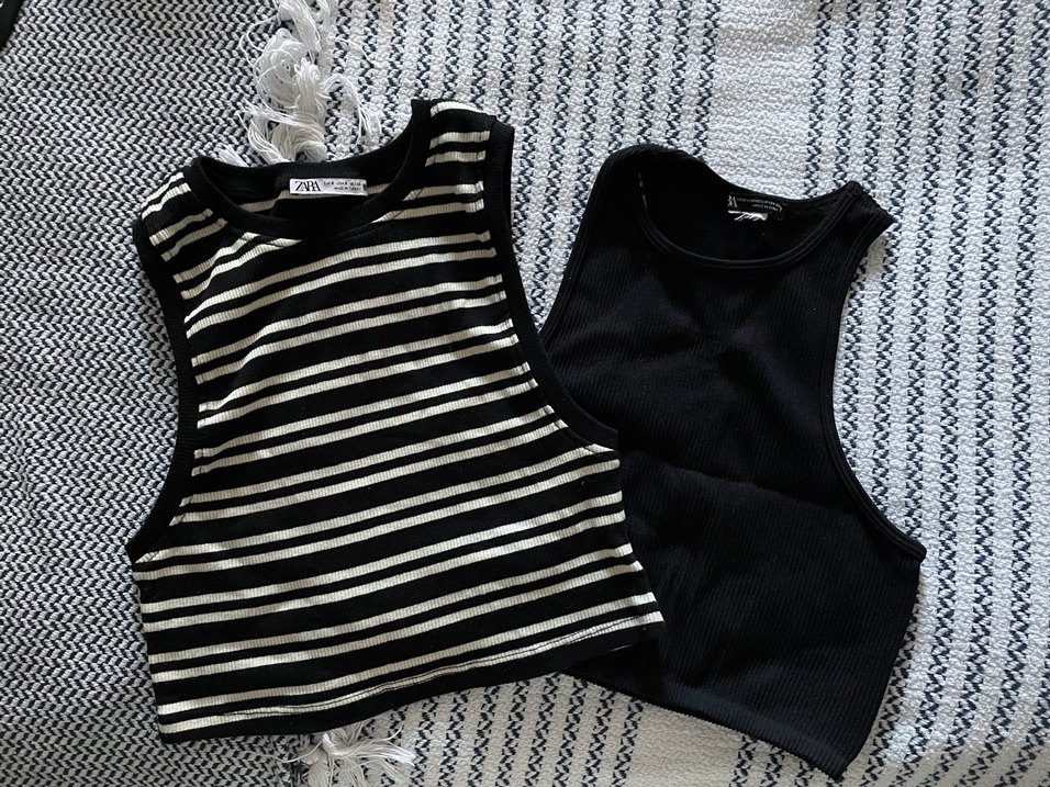 Yüksek yakalı, çizgili desenli, kısa kesim ve dar kesim kadın atlet. Yumuşak tekstil malzemeden, günlük rahat kullanım için uygun. Siyah renk, zahmetsiz şıklık sunar.