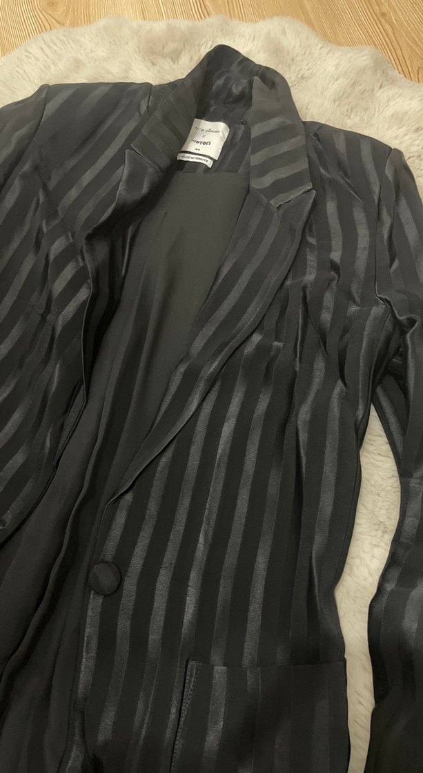 Kadın Siyah Çizgili Uzun Blazer Ceket