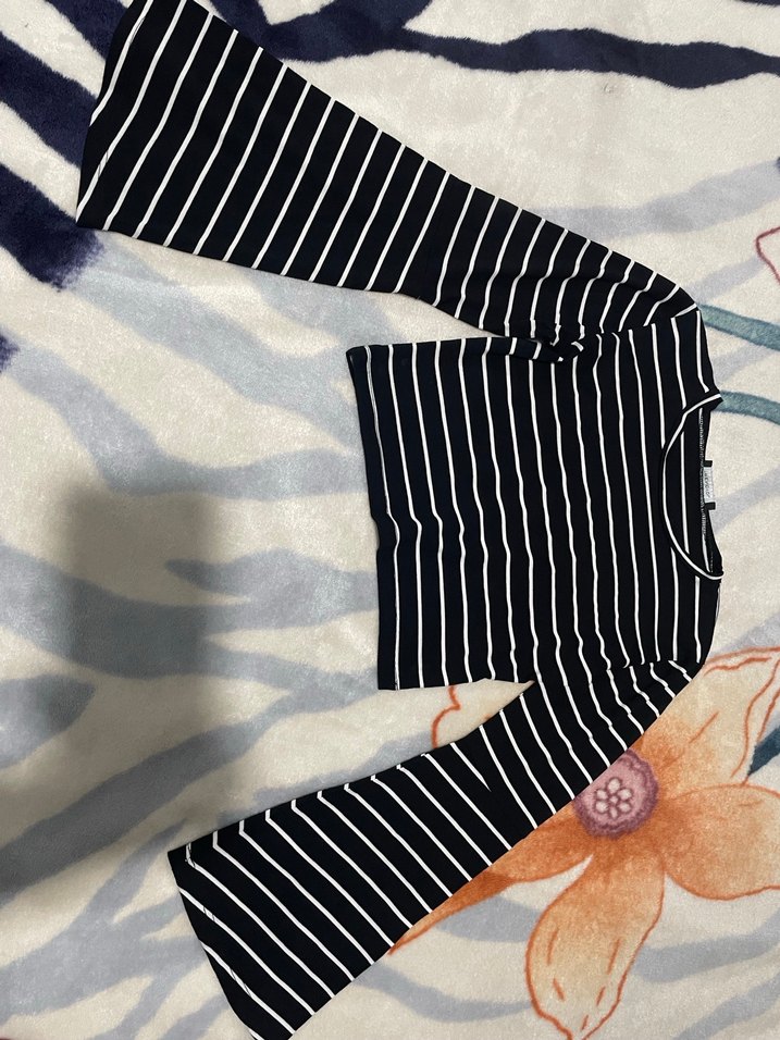 Kadın Siyah Çizgili Uzun Kollu Crop Top