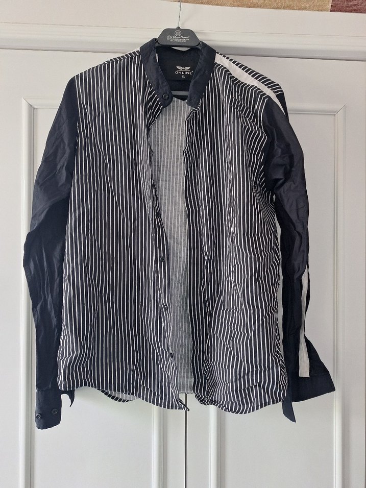 kadın gömlek, uzun kollu, düğmeli ve hakim yaka.regular fit ve midi boydadır. Siyah ve gri çizgili deseniyle günlük sokak stiline uygundur.