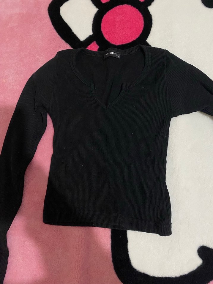 Kız çocukları için siyah, V yakalı ve uzun kollu, vücuda oturan bluz. Yumuşak ve sıcak kumaştan yapılmıştır, gündelik ve şık gotik tarz sunar.