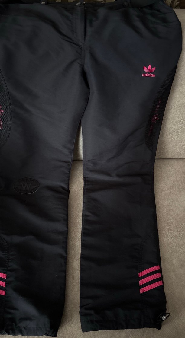 Kadınlar için dar kesim siyah eşofman altı, fermuarlı detaylı ve yumuşak sentetik kumaştan üretilmiştir. Açık hava kullanımı için uygun, trend sokak stili ve pembe Adidas logolu sportif tasarıma sahiptir.