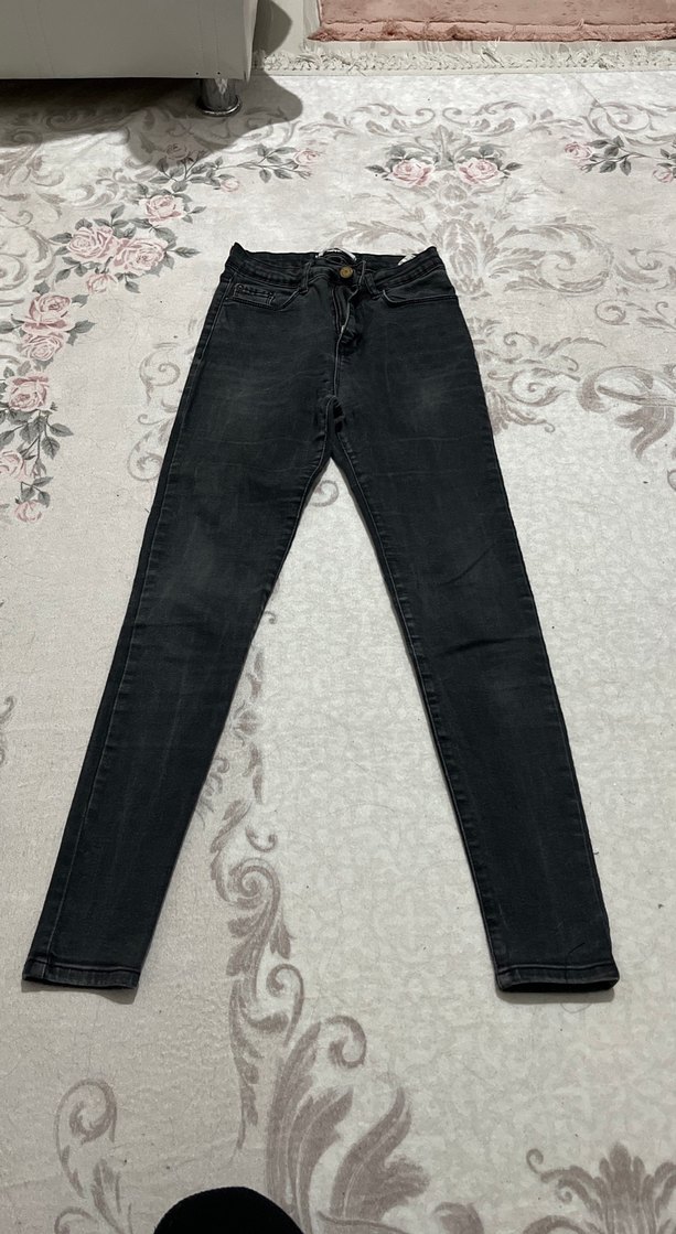 Siyah dar kesim kadın kot pantolon, dayanıklı denimden üretilmiş ve bağcıklı detaylara sahip. Günlük rahat kullanım için uygun normal boyda.