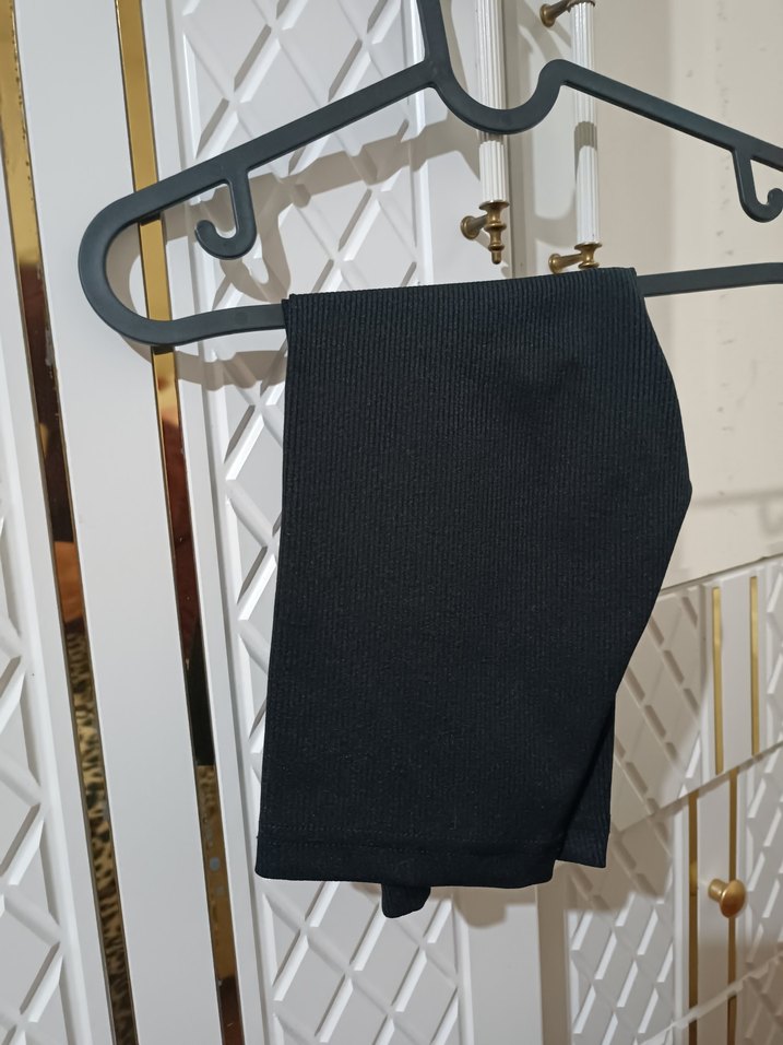 Kadınlar için siyah, dar kesim midi uzunluğunda, elastik bel bantlı kumaş pantolon. Sokak stili ve athleisure için uygun, günlük kullanıma ideal.