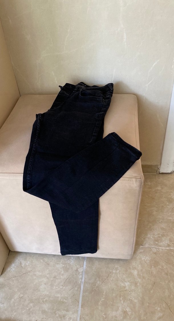 Dar kesim siyah denim kot pantolon, tokalı detaylıdır. rahat kesimiyle günlük kullanıma uygundur.