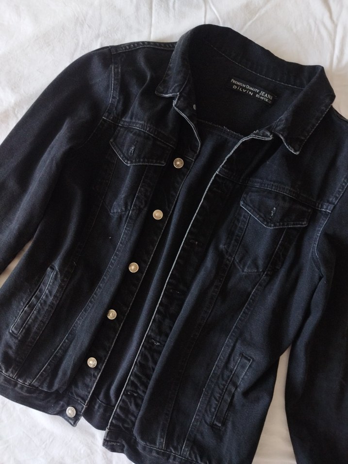 Siyah eskitme uzun denim kadın ceket. Çok az kullanıldı. Dilvin/40 beden