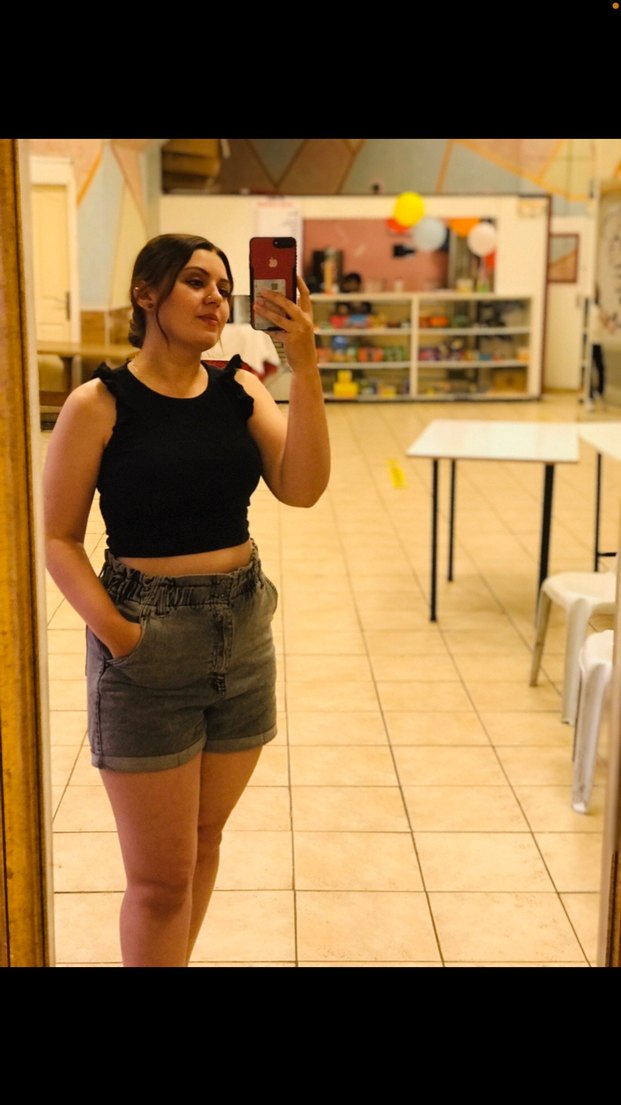 Siyah, düz desenli, diz üstü uzunlukta ve vücuda oturan denim şort, günlük rahat ve şık stil için uygundur.