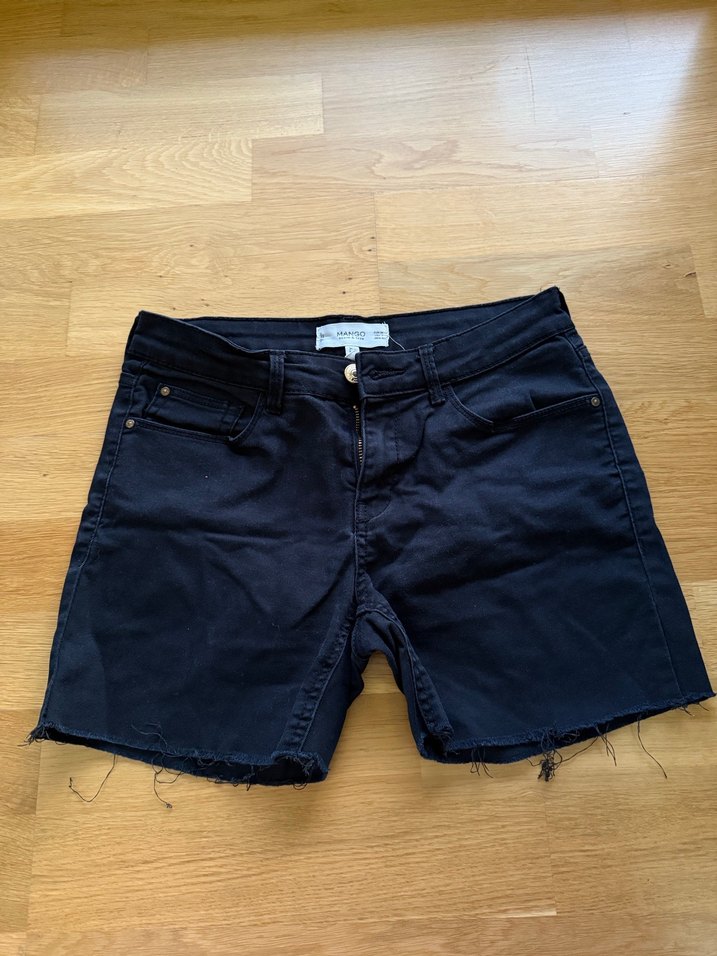 Pantolonu kesmiştim çok kısa değil Siyah denim mini şort, bol kesim ve kısa boyda. Desensiz, günlük kullanım için uygun, zahmetsiz şıklık sunar. ✨
