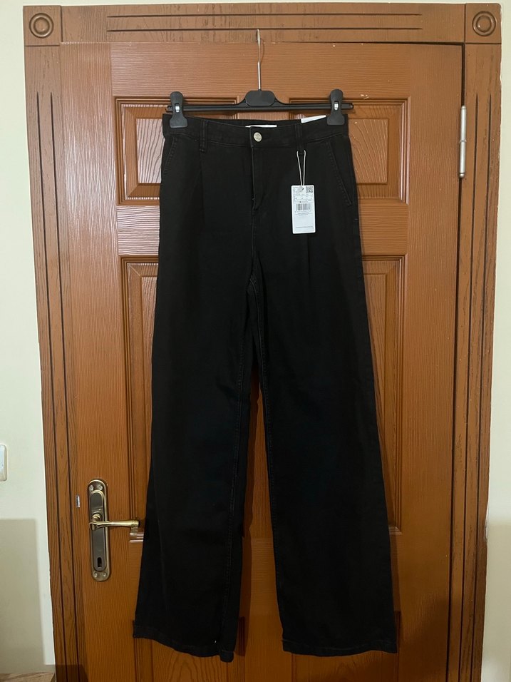 Siyah denimden yapılmış, normal boyda kadın jean. Günlük kullanıma uygun, desensiz ve rahat kesim.