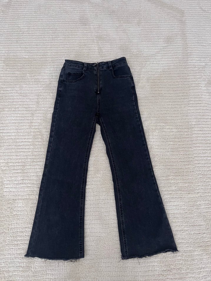 Kadınlar için siyah renkli, bol kesim ve midi boy denim pantolon. Günlük kullanım için rahat ve şık bir görünüm sunar.