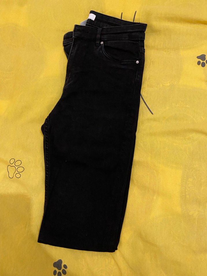 Kadınlar için siyah denimden yapılmış, kemerli ve regular fit kesime sahip normal boy pantolon. Günlük kullanıma uygundur.