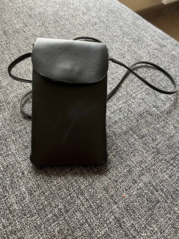 Siyah deri, bel detaylı kadın çapraz çanta. Günlük sokak stiline uygun, minimalist ve sade tasarım.
