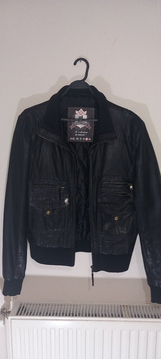 Siyah, oturmalı kesime sahip bu deri biker ceket, notalı yaka, uzun kollu ve tokalı detaylarla tamamlanmıştır. Normal boyu ve koyu tonu günlük kullanıma uygundur.