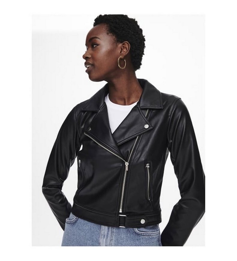 Kadın Siyah Deri Biker Ceket
