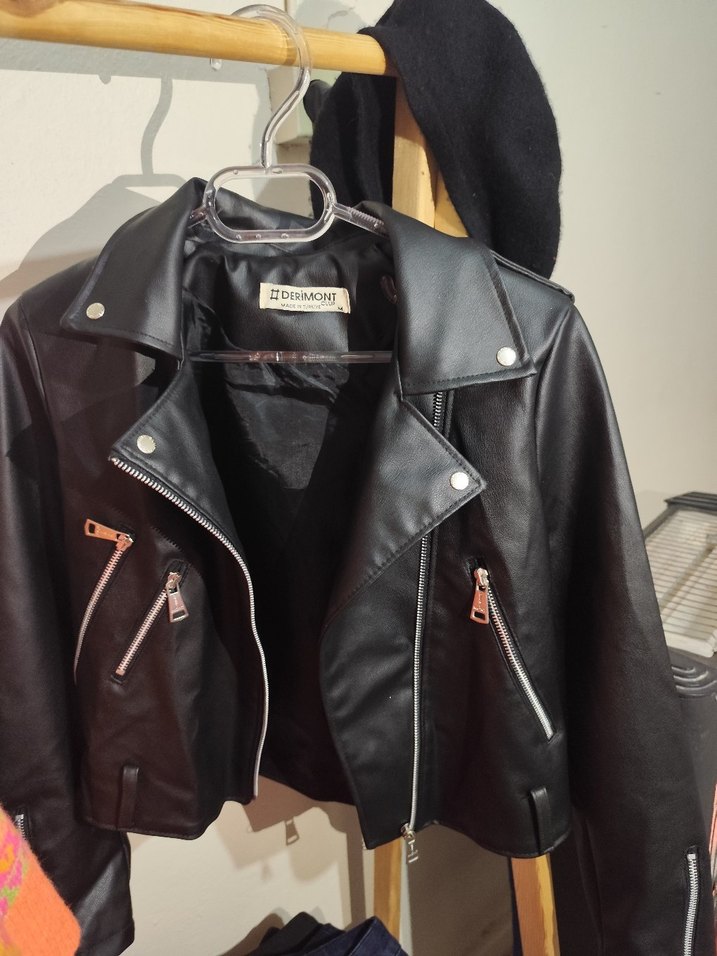 Kadın Siyah Deri Biker Ceket