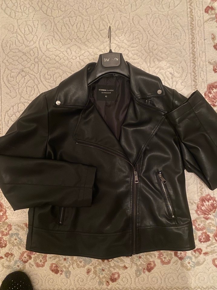 Kadınlar için siyah deri biker ceket, tokalı detay ve kesik yakaya sahiptir. Normal kesim ve uzun kolludur, günlük kullanıma uygundur.