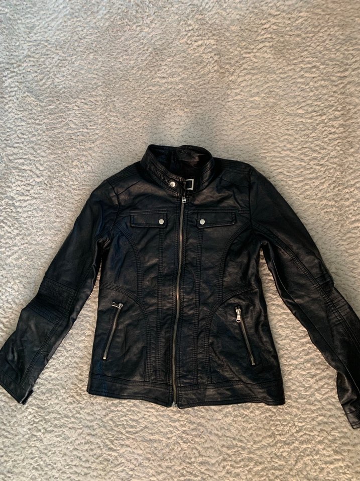 Bu siyah deri biker ceket, oturmalı kesimi ve kemerli detayları ile dikkat çeker. Uzun kollu ve normal boydadır, günlük kullanım için uygundur. fiyatta anlasabiliriz