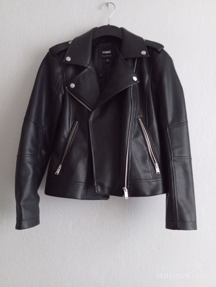 Siyah deri ceket orjinal mavi marka sıfır ayarında detaylarıyla fotoğraflanmıştır sezon ürünüdür