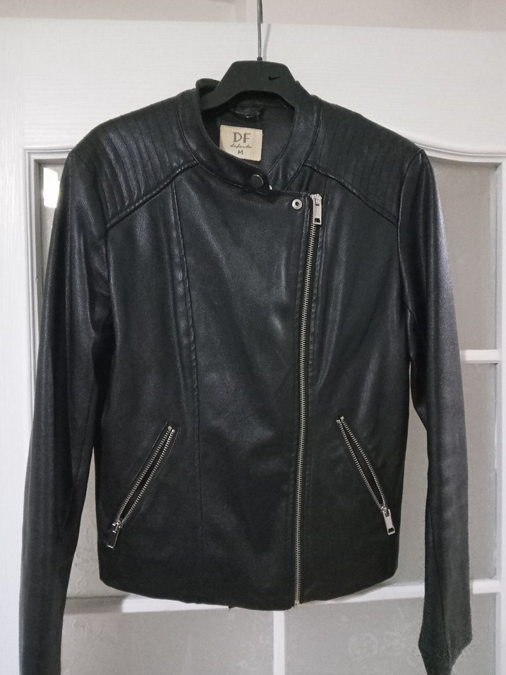 Bu siyah deri biker ceket, fitted kesimi, bisiklet yaka, fermuarlı ön ve uzun kolludur. Günlük kullanıma uygun, desen içermeyen koyu renkte ve trend bir tarza sahiptir. Ense kısmında soyulmalar mevcut, fiyatı uygun tuttum