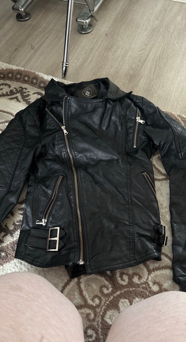 Fitted kesim siyah deri biker ceket, tokalı kayışlar ve kesik yaka ile grunge punk tarzında, rock punk havası sunar. Günlük kullanım için uygundur. Koltuk altında sökük var ihtiyacı olan biri alabilir