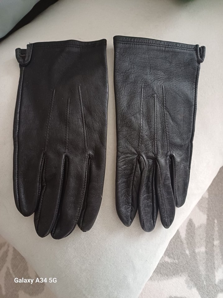 Kadınlar için siyah deri biker eldiven, tokalı tasarımla klasik ve koyu renkte.