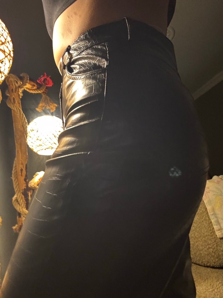 Kadın Siyah Deri Biker pantolon