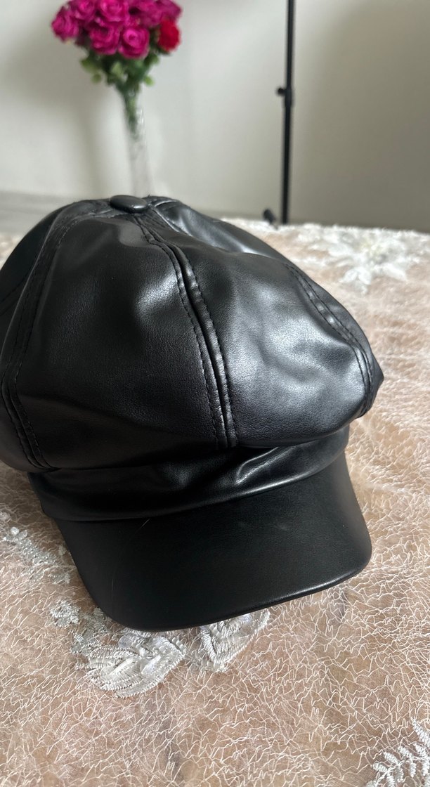 Kadın Siyah Deri Biker Şapka