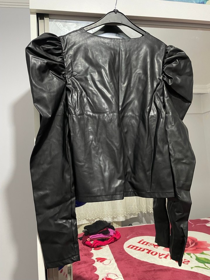 Kadın Siyah Deri Bluz