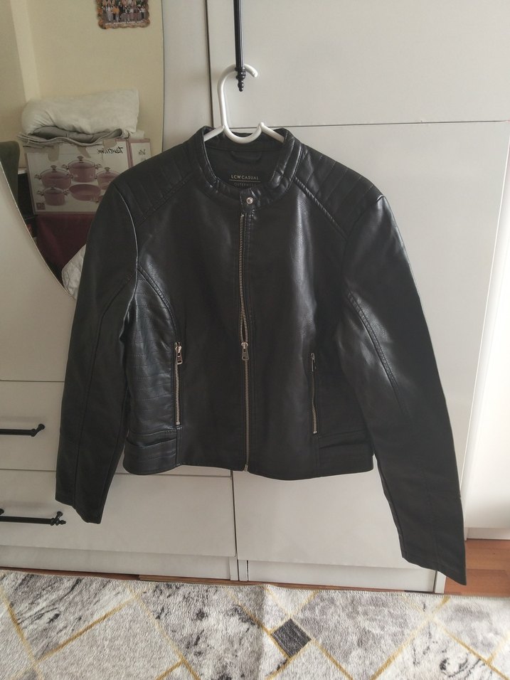 Siyah deri ceket. Fermuarlı cepler içerir. Günlük kullanıma uygundur. 40 beden uyumludur
