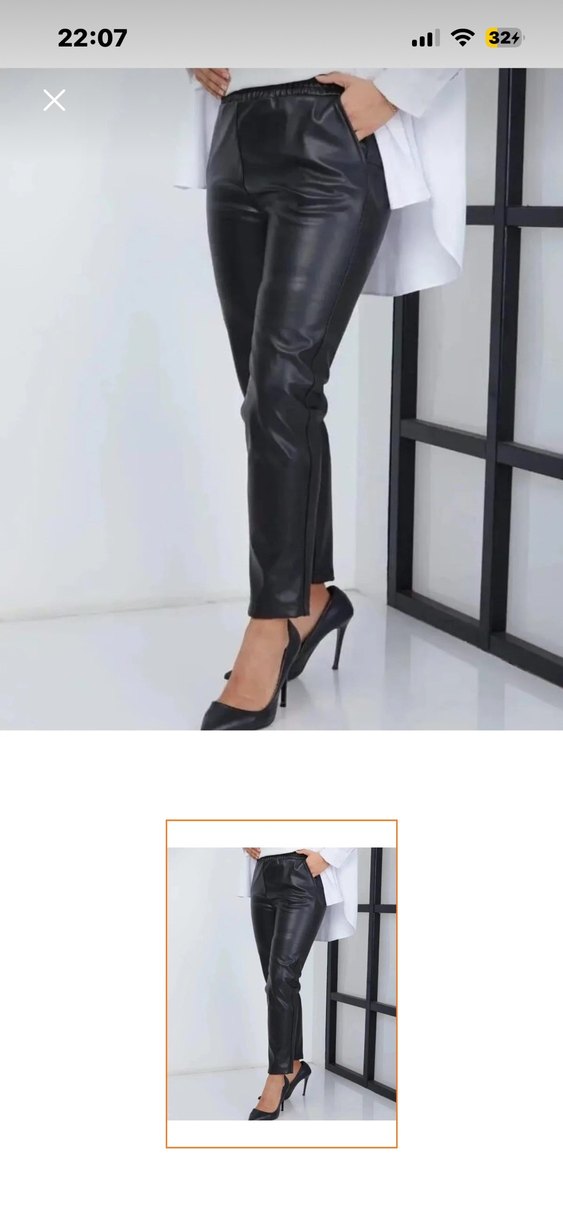 Ofis için uygun, parlak siyah deri pantolon. Regular fit ve yırtmaç detaylı, midi boyda, çağdaş tarzda.